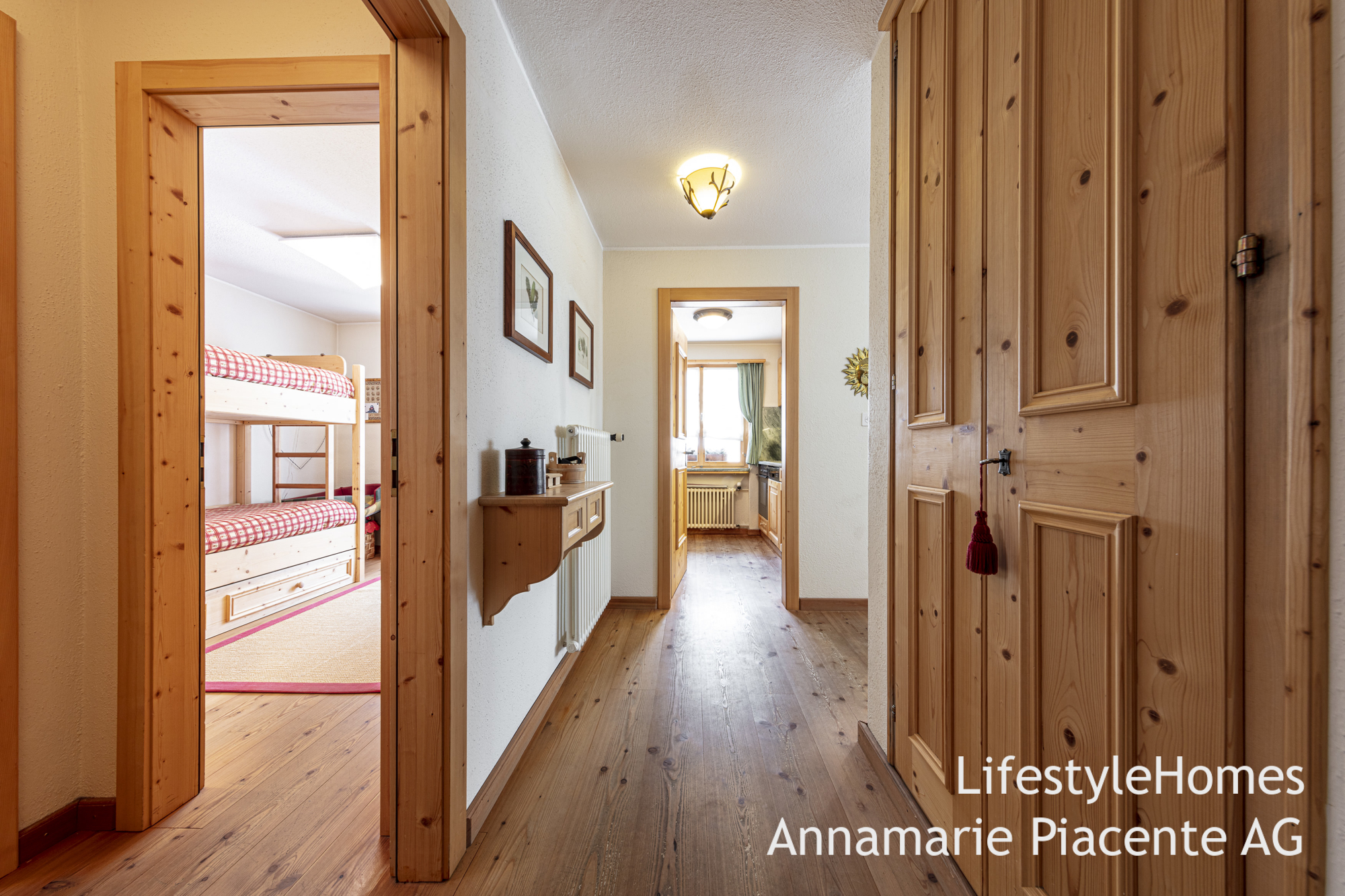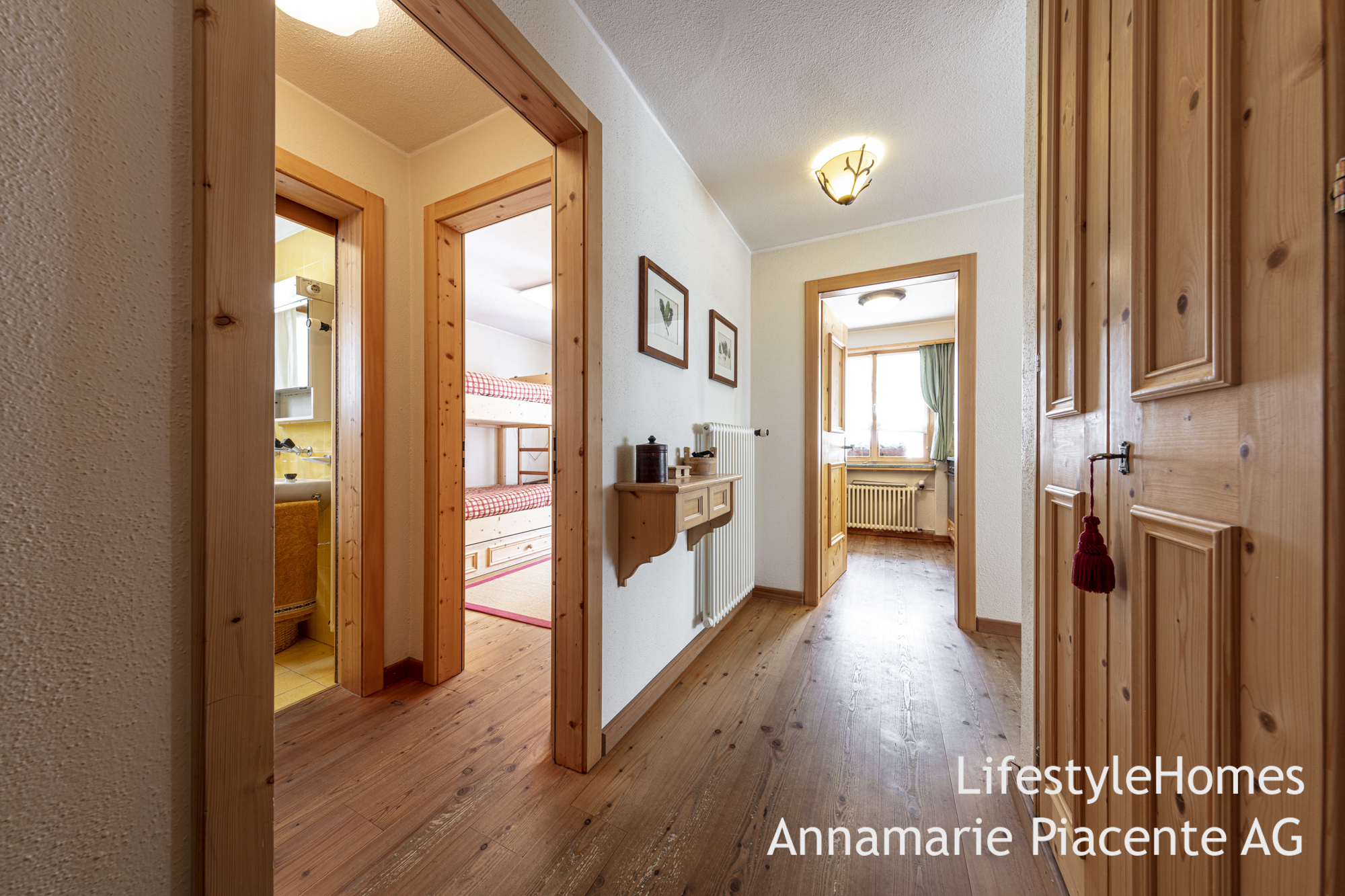 Die Fussböden aus Holz verleihen der Wohnung eine angenehme Wärme. Das spezielle Ambiente und die Liebe zum Detail werden Sie überzeugen.