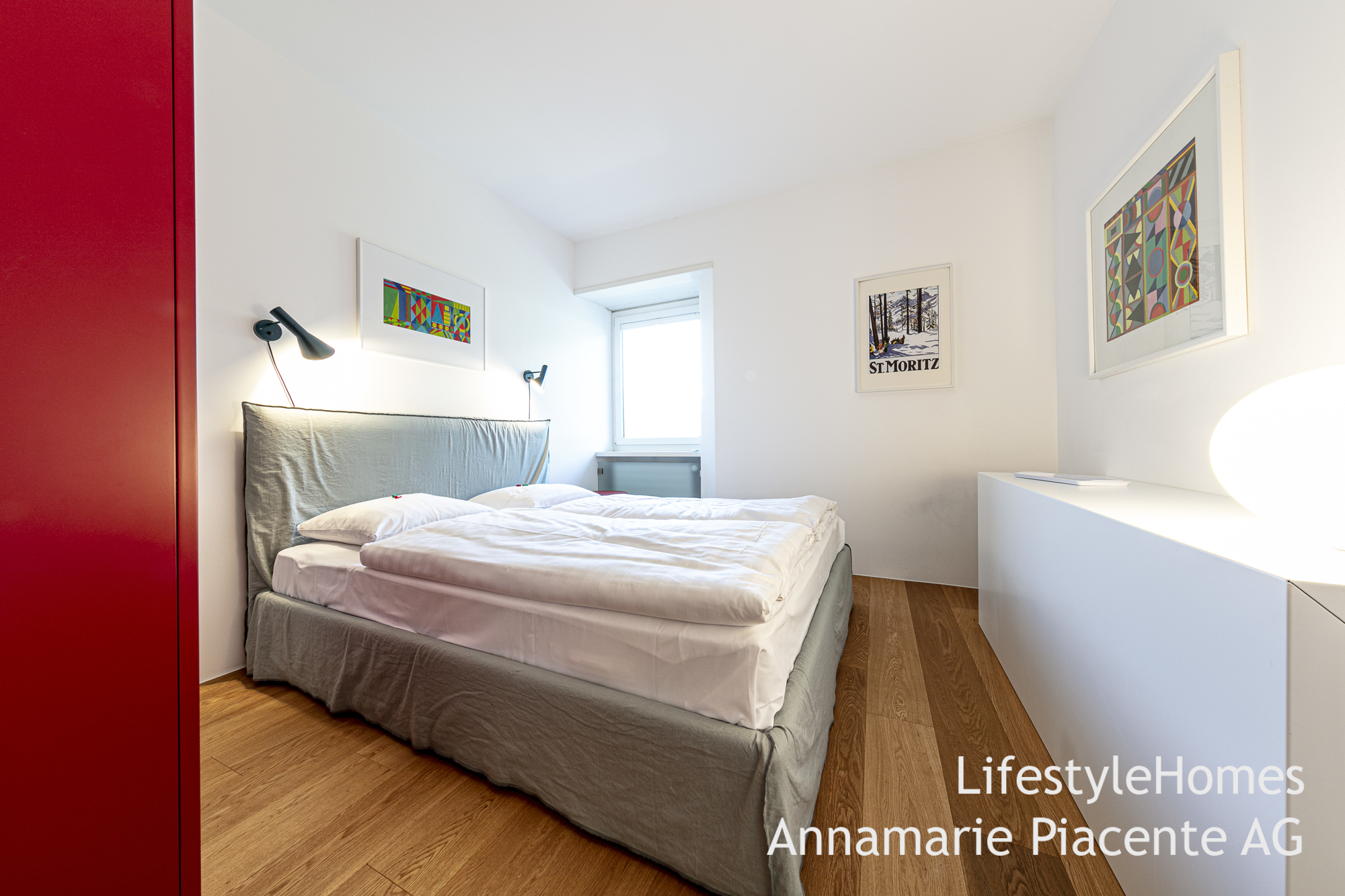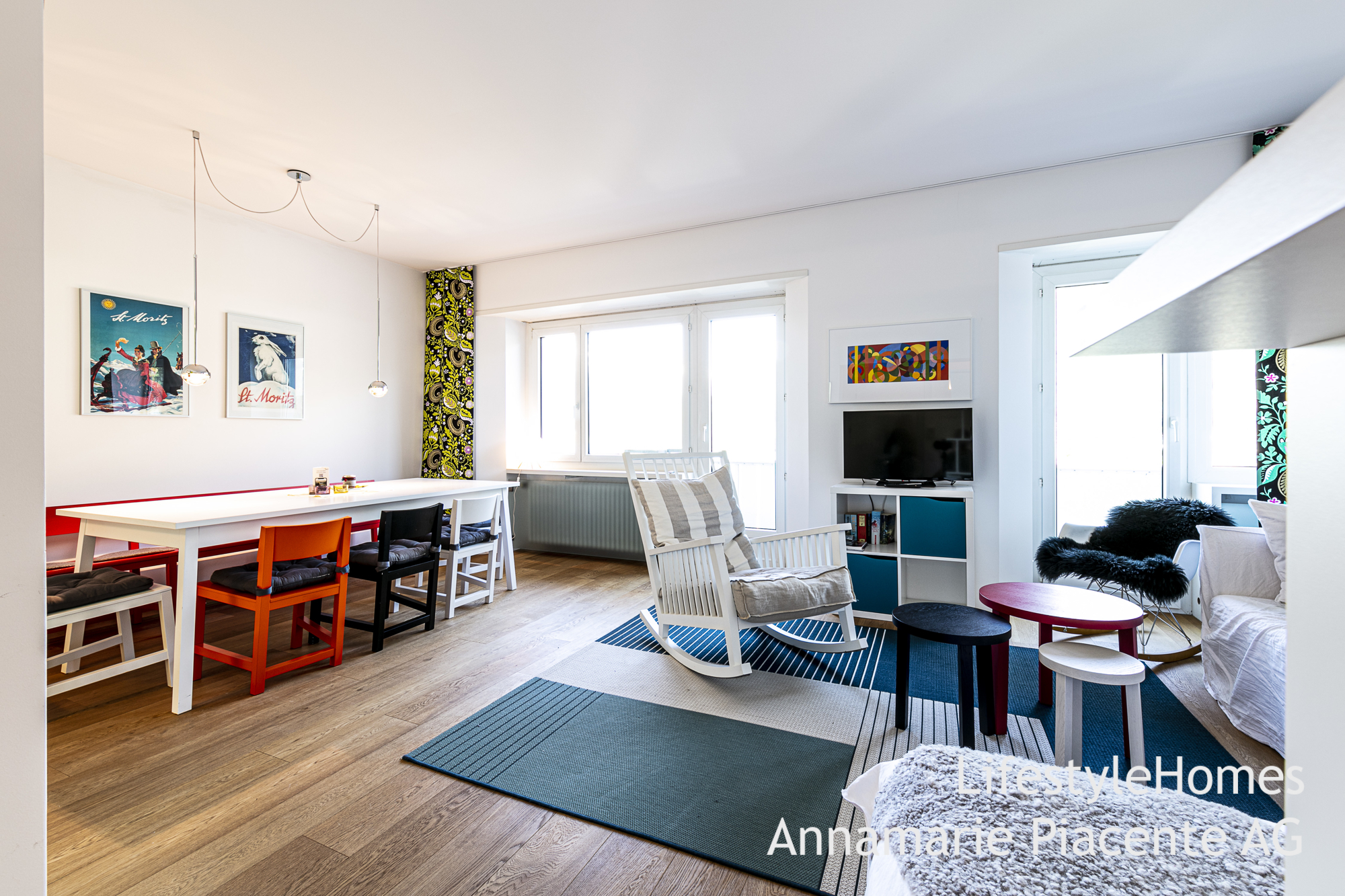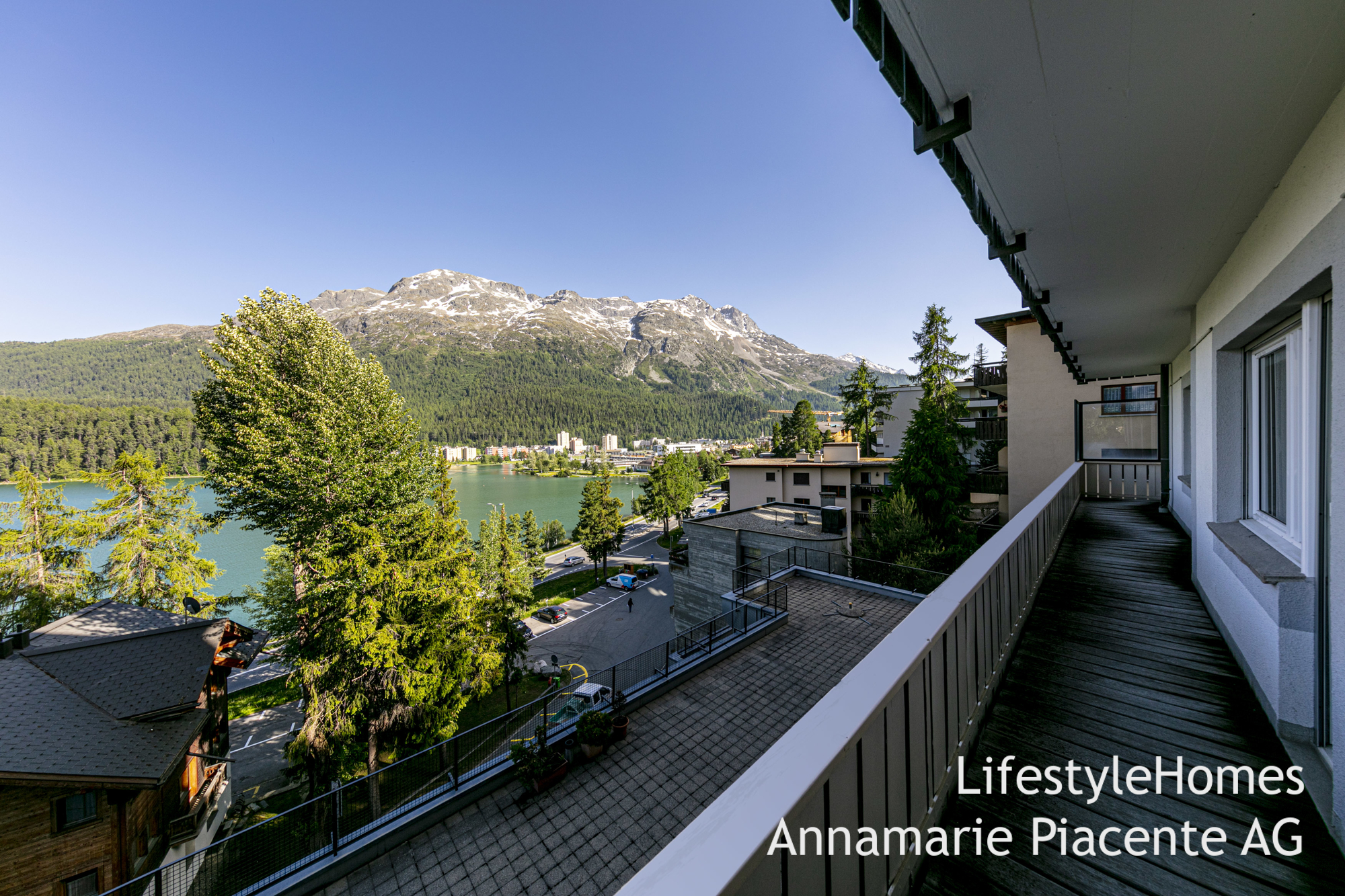 www.lifestyleHomes.chAn der Via dal Bagn in St. Moritz verkaufen wir eine renovierte, luxuriöse 4.5 Zimmerwohnung mit fantastischer Panoramasicht vom Balkon aus, der sich über die gesamte Hausbreite zieht.