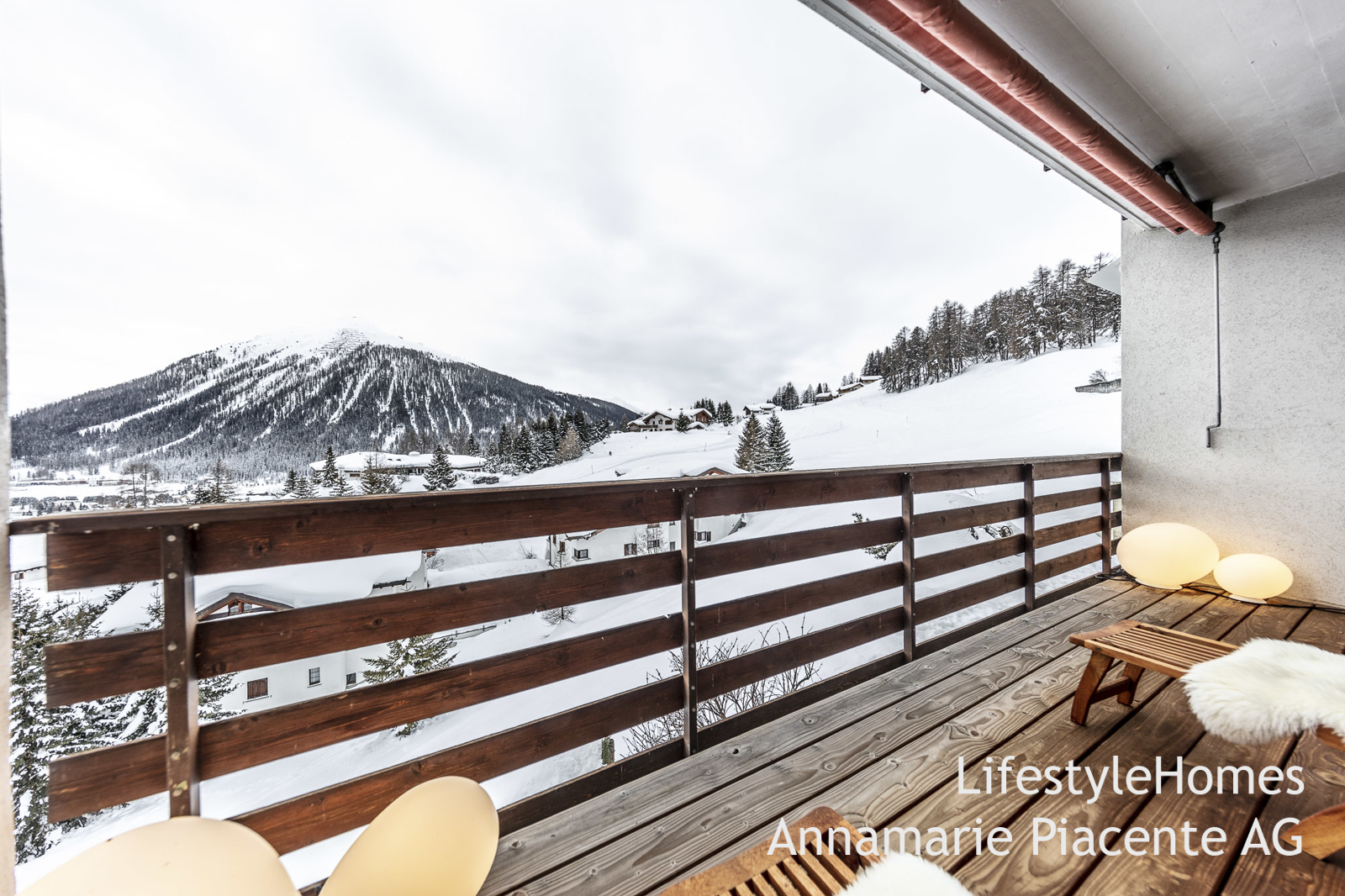 Auf dem grossen Südwestbalkon werden Sie die „Davoser Sonne “ bis abends geniessen können. Täglich werden Sie sich an der atemberaubenden Panoramaaussicht erfreuen können.