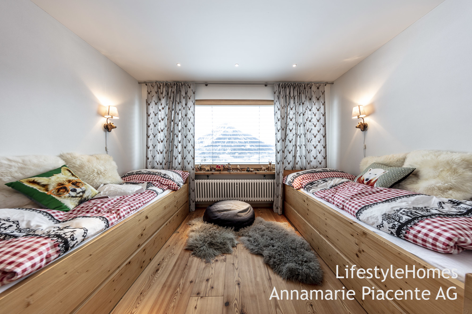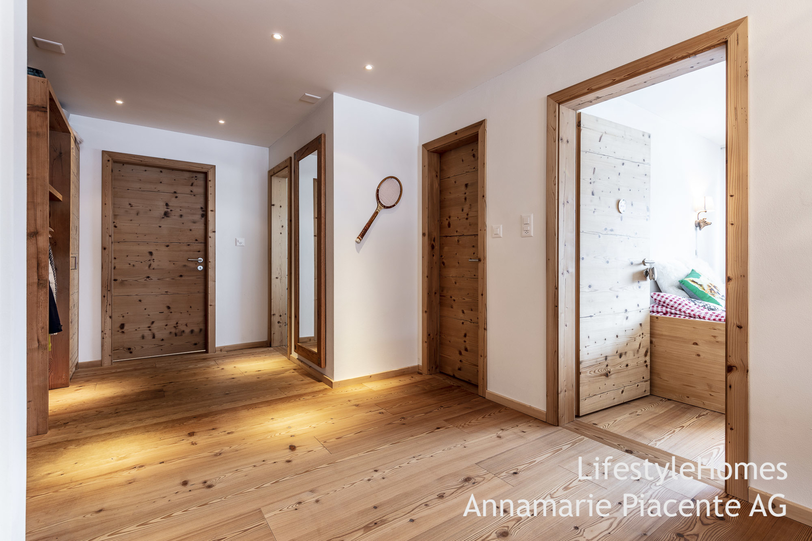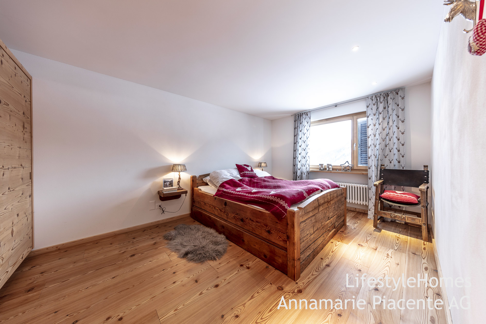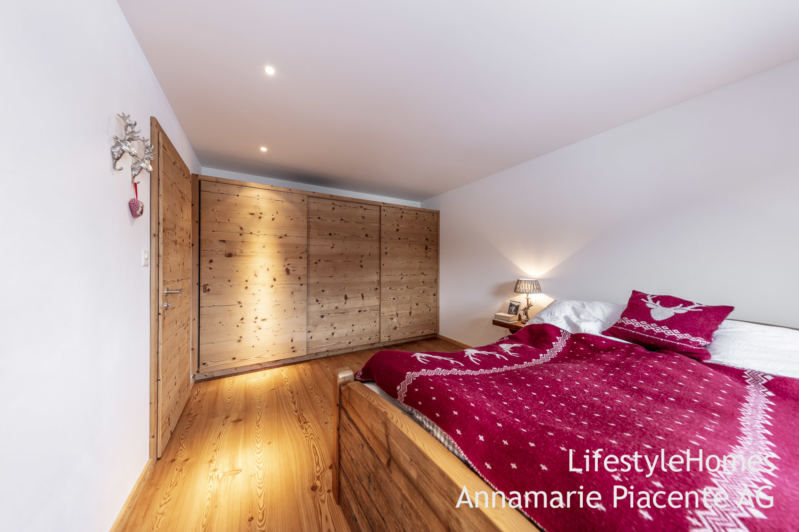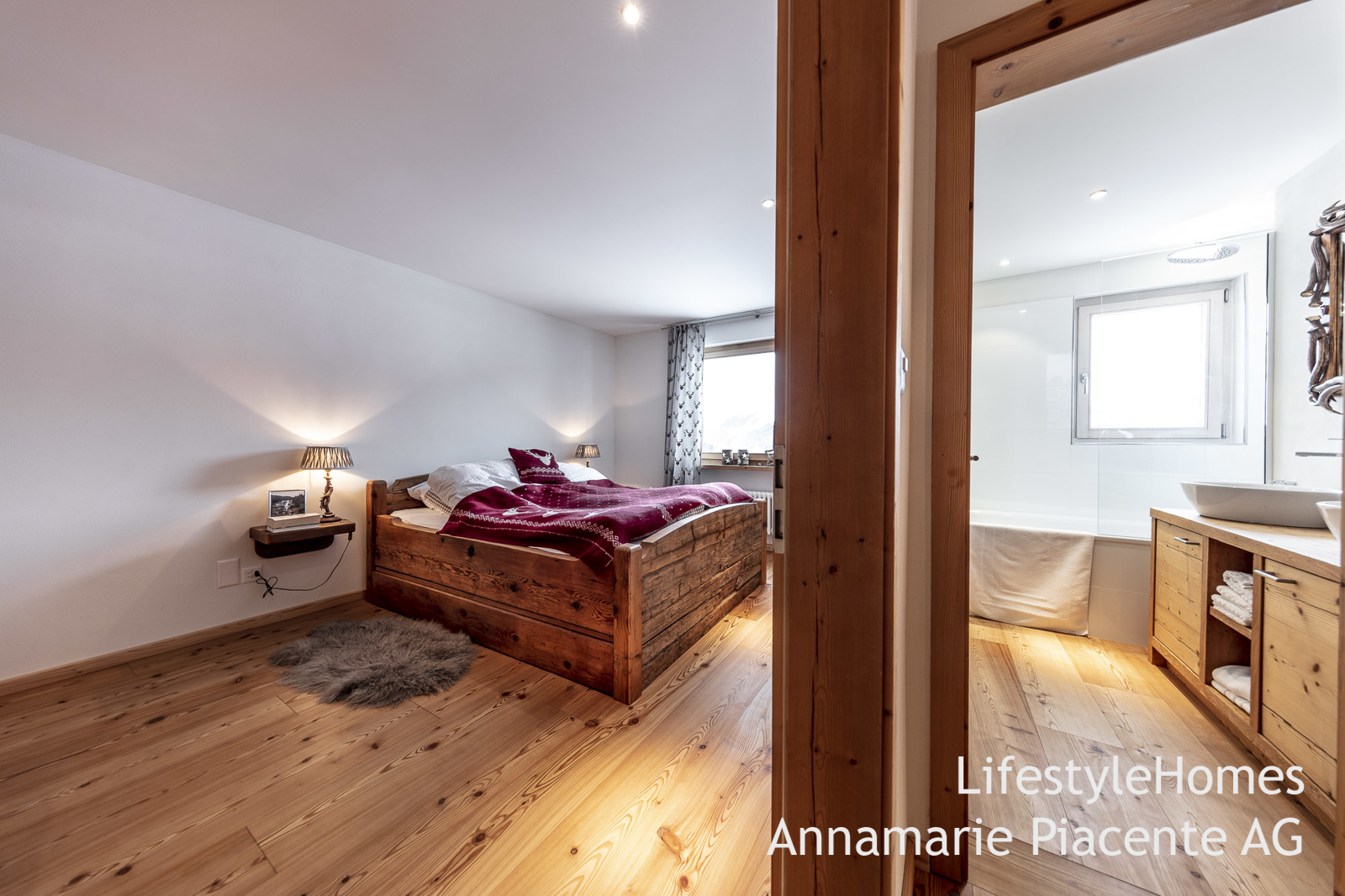 Der Masterbedroom mit massgeschneiderten Möbeln aus Altholz wird Sie überzeugen. Der Lärchenholzboden der sich durch die ganze Wohnung zieht, verleiht der Wohnung Wärme und den urigen Flair.