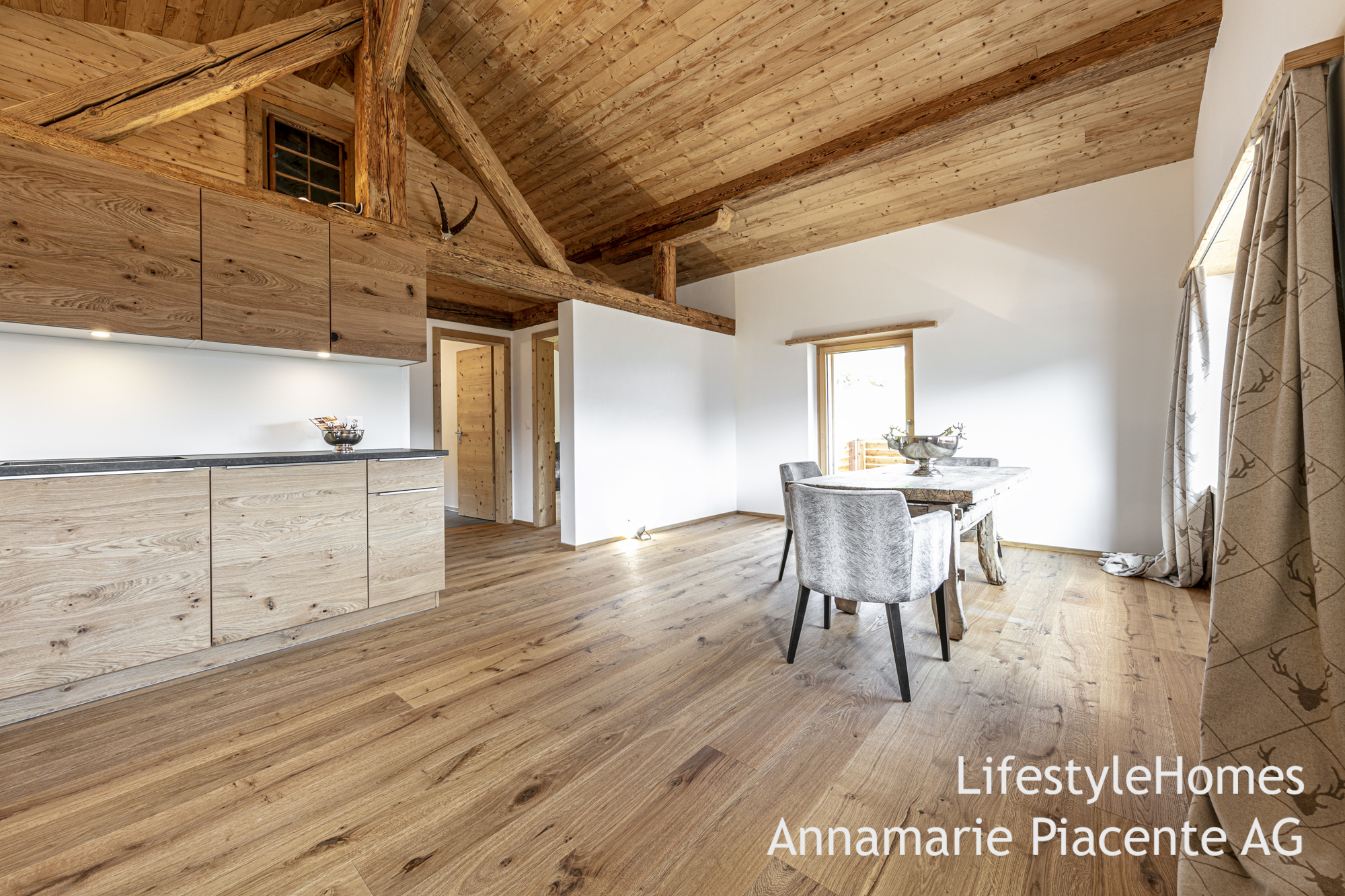 Lasciatevi sorprendere dalla nobile rifinitura interna in legno antico. Stile di vita alpino"; e l'esclusività caratterizzano questa proprietà unica nel suo genere.