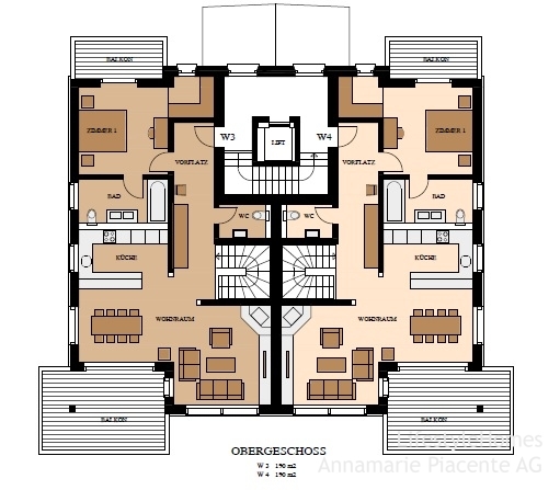 La zona padronale con camera da letto, bagno e cabina armadio. Altre quattro camere da letto con bagno e un ulteriore guardaroba completano la zona giorno. Oltre all'attrezzatura di base di alta qualità con un sistema di casa intelligente, un ascensore e un sistema di riscaldamento a pavimento azionato da sonde geotermiche, ogni appartamento dispone di generosi locali di servizio (ca. 30 mq), un ripostiglio e una cantina nel seminterrato.