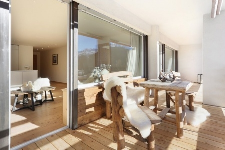 Auf dem grossen Südwestbalkon werden Sie die „Davoser Sonne “ bis abends geniessen können. Täglich werden Sie sich schon morgens vom Bett aus, an der atemberaubenden Panoramaaussicht erfreuen können.